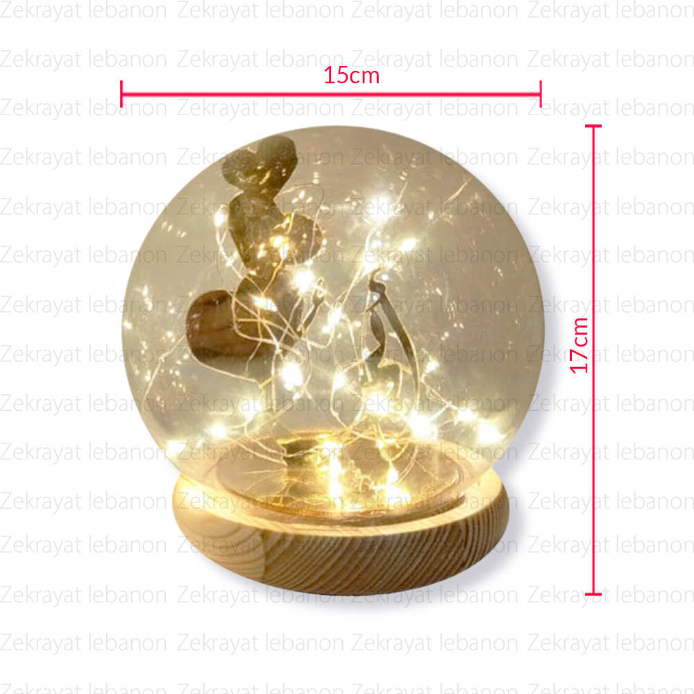 Glass Dome With Lamp Led String Light (Dark Wood Base)