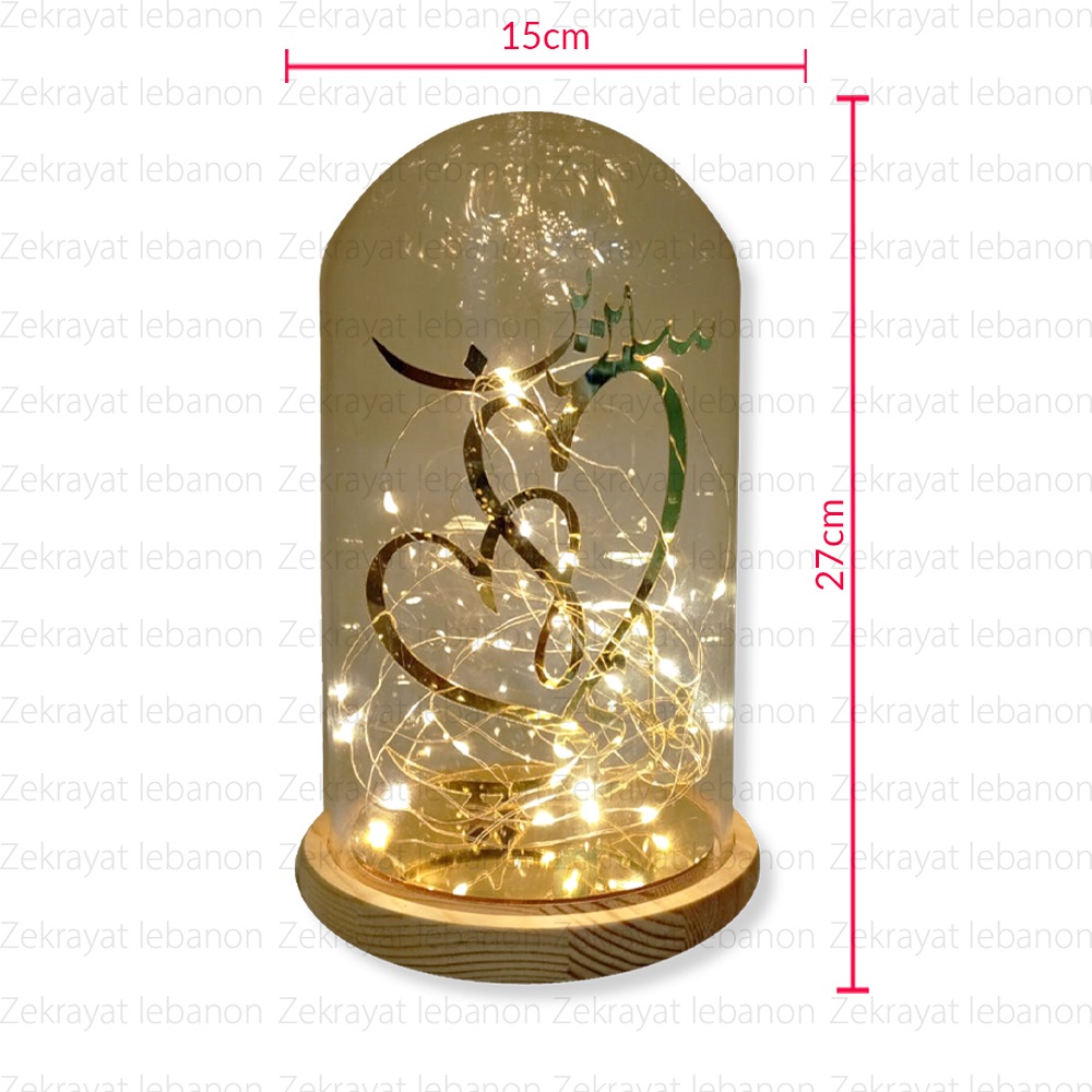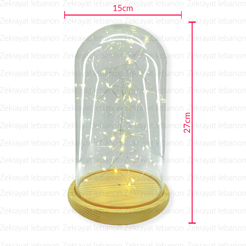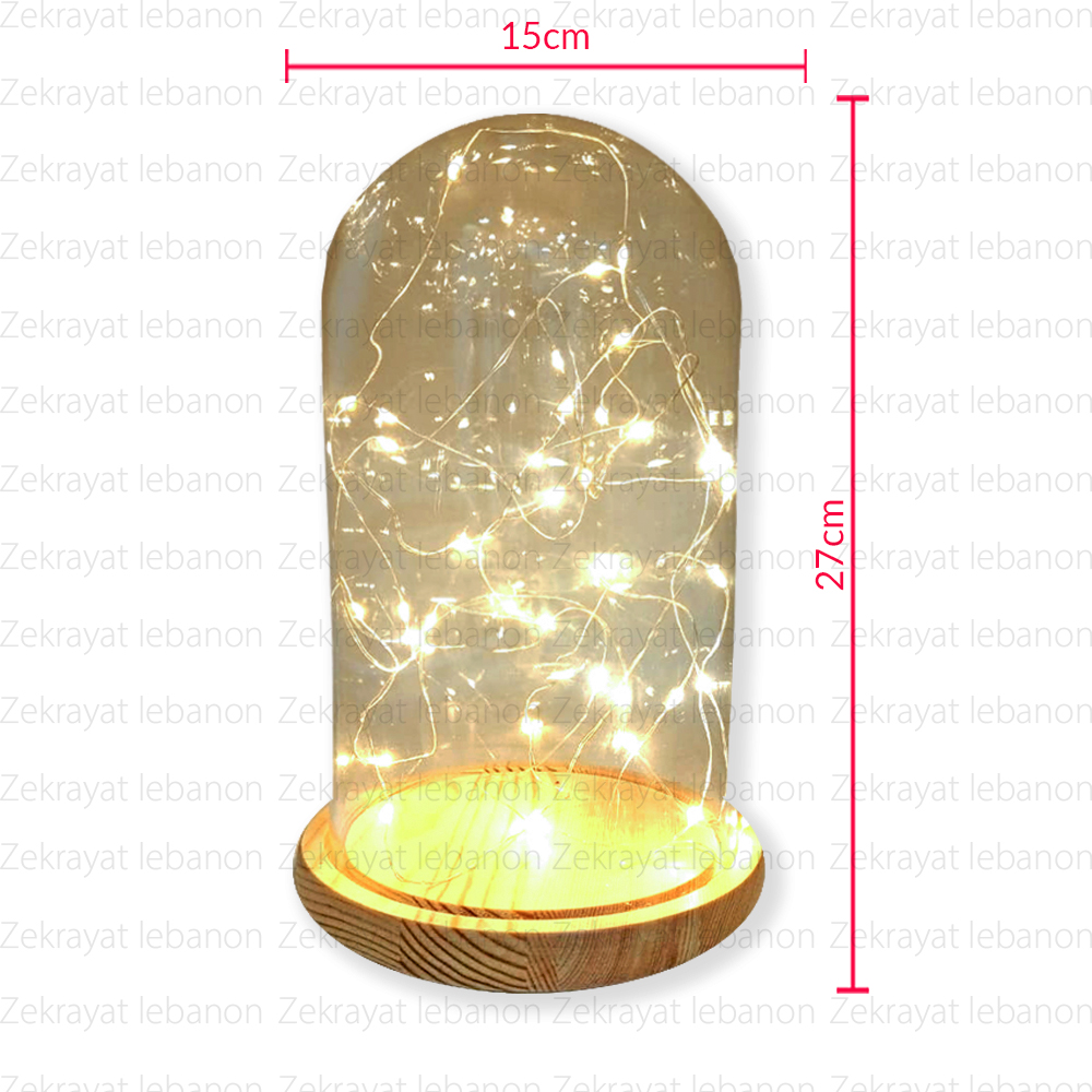 Glass Dome with Lamp Led String Light (Wood Base)