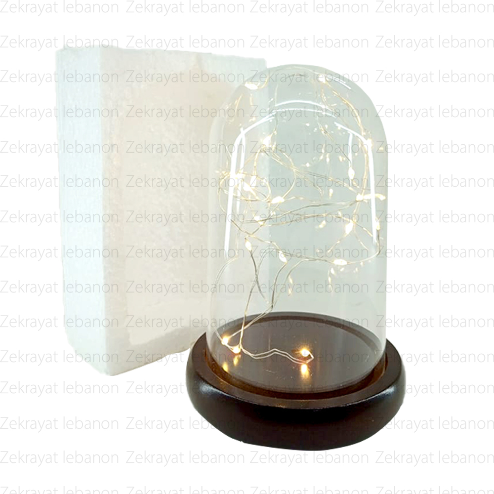 Glass Dome With Lamp Led String Light (Dark Wood Base)
