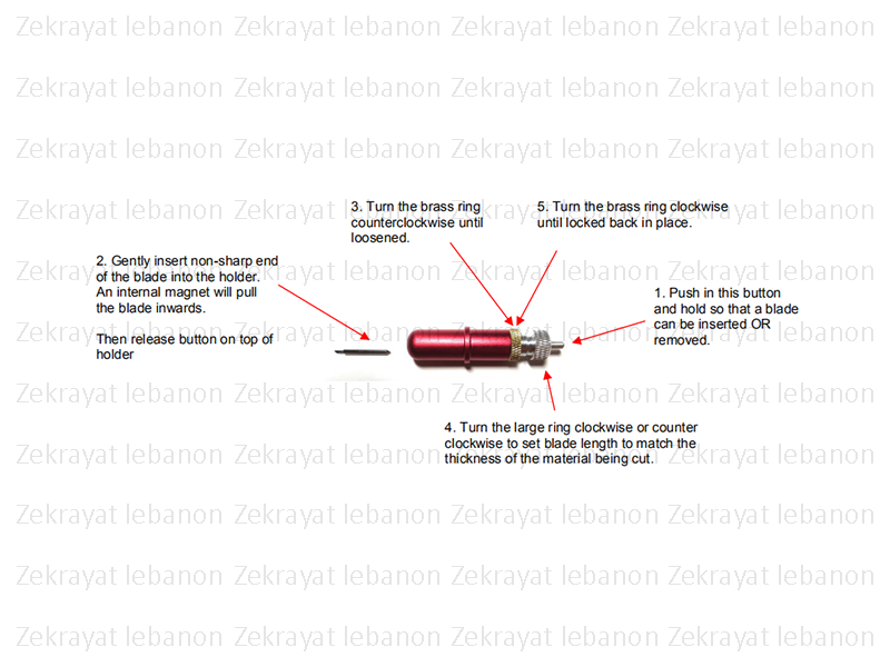 The blade must be carefully inserted into the blade holder. Do this over a soft surface (e.g. over a hand towel). It’s important to protect the fragile blade! To install, follow the numbered steps as shown
